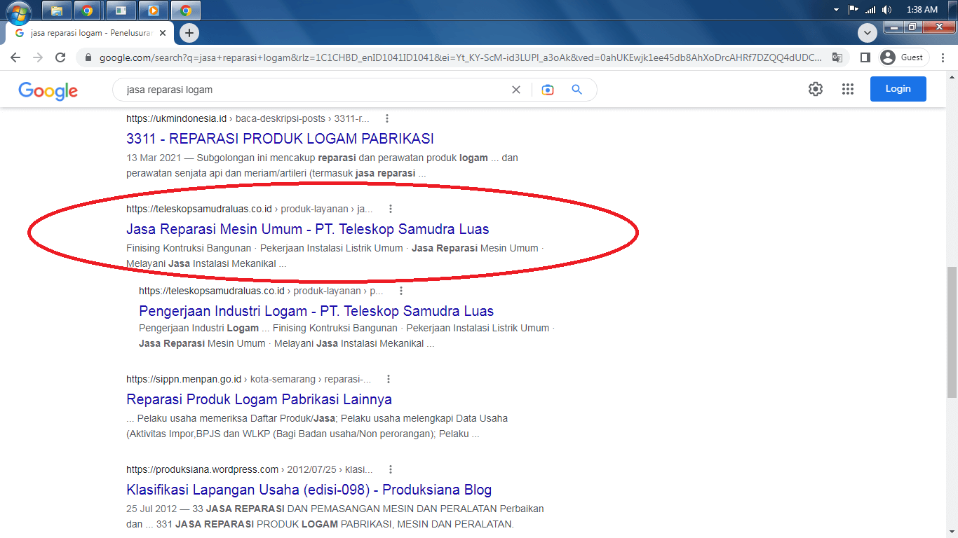 Menjadikan website ke page 1 google dengan kata kunci "jasa reparasi logam"